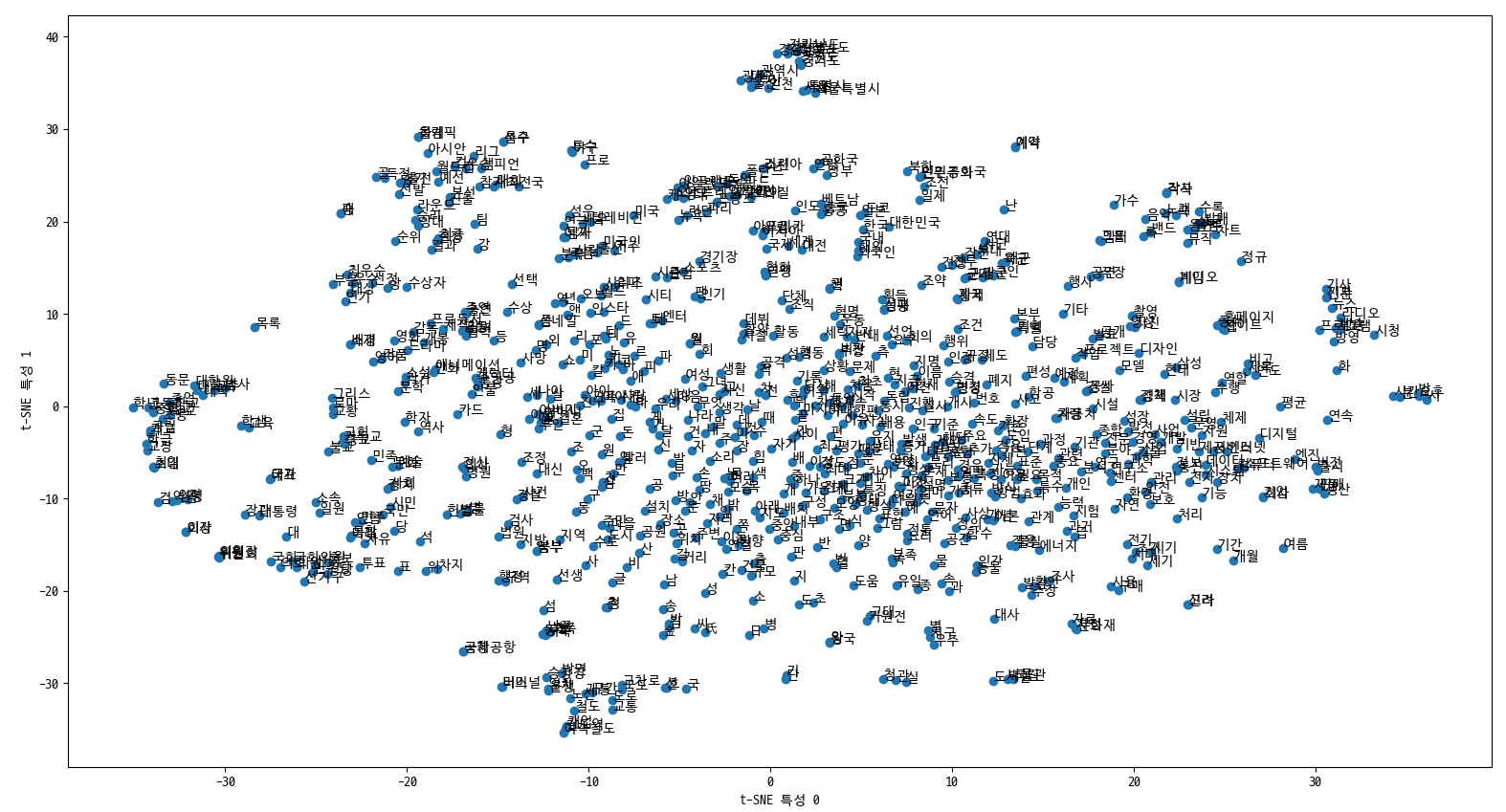 100 차원의 임베딩 결과를 2차원으로 시각화 한 결과들이다.