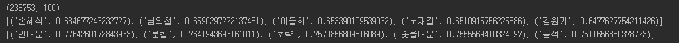 그리고 Word2Vec 결과에 유사도 상위 단어 목록을 체크도 해보았는데