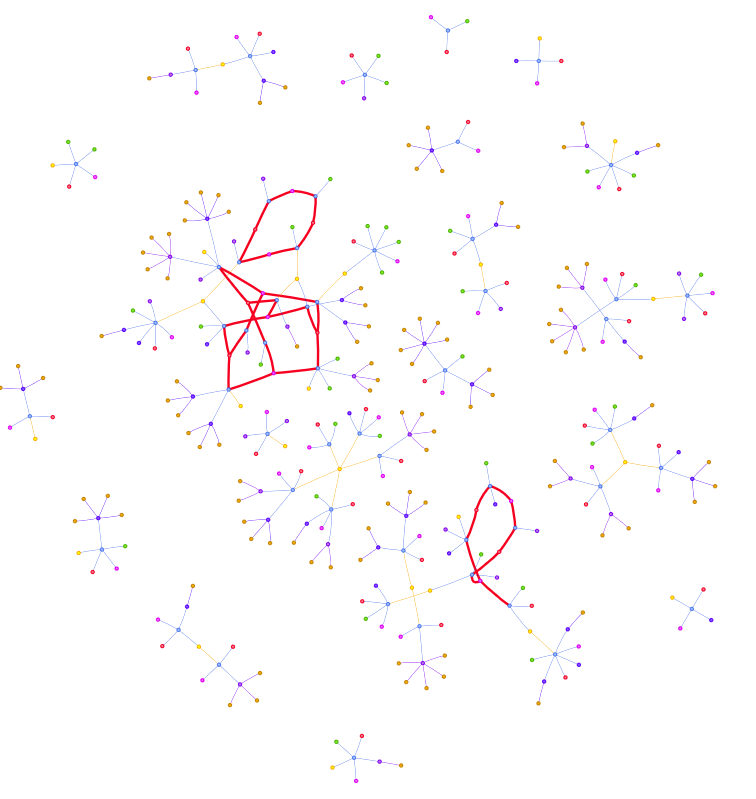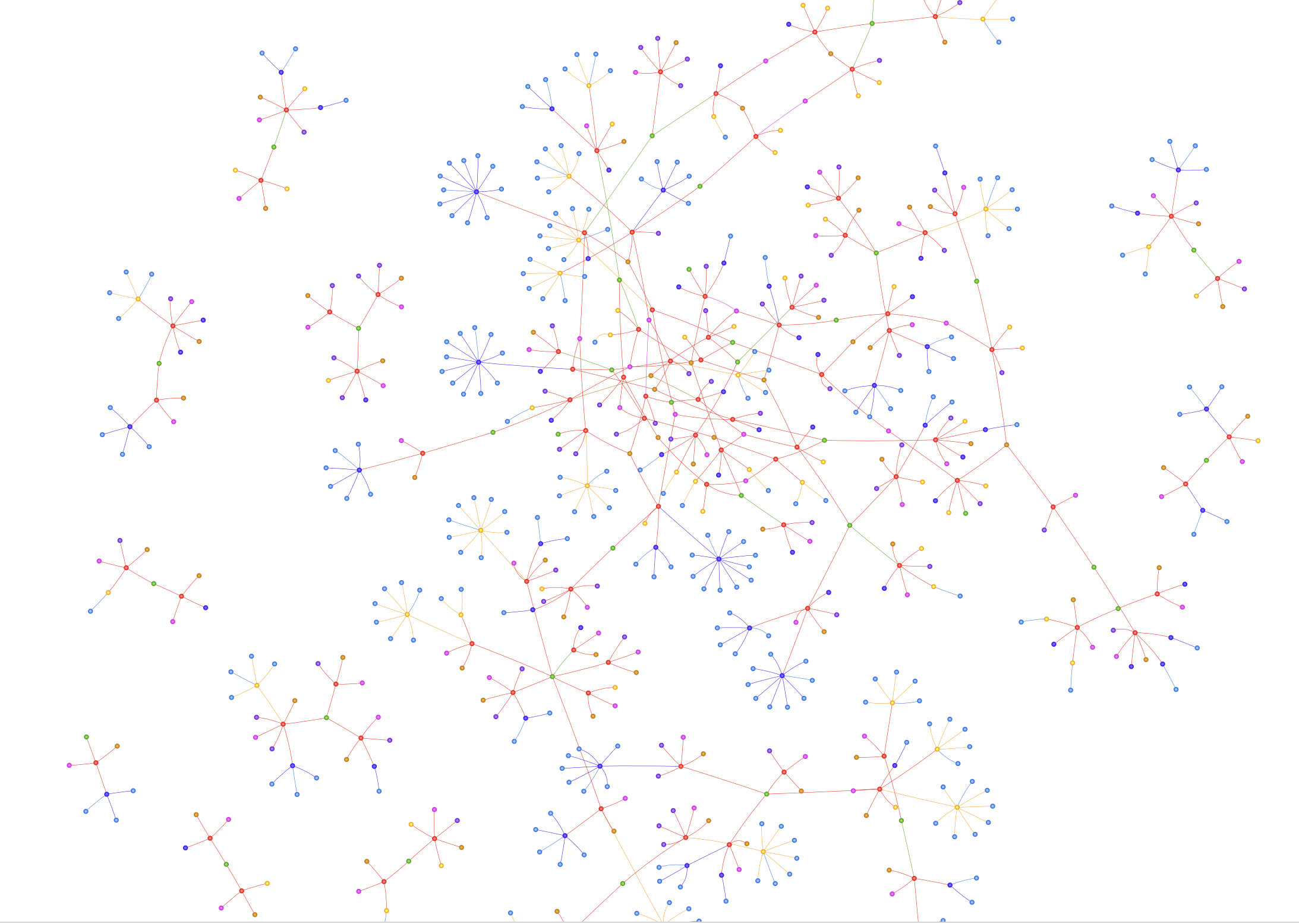 위의 그래프에서는 노드의 색상은 노드의 타입에 따라 각각 구분되어 동일한 타입은 같은 색상으로 표현하고 있다.