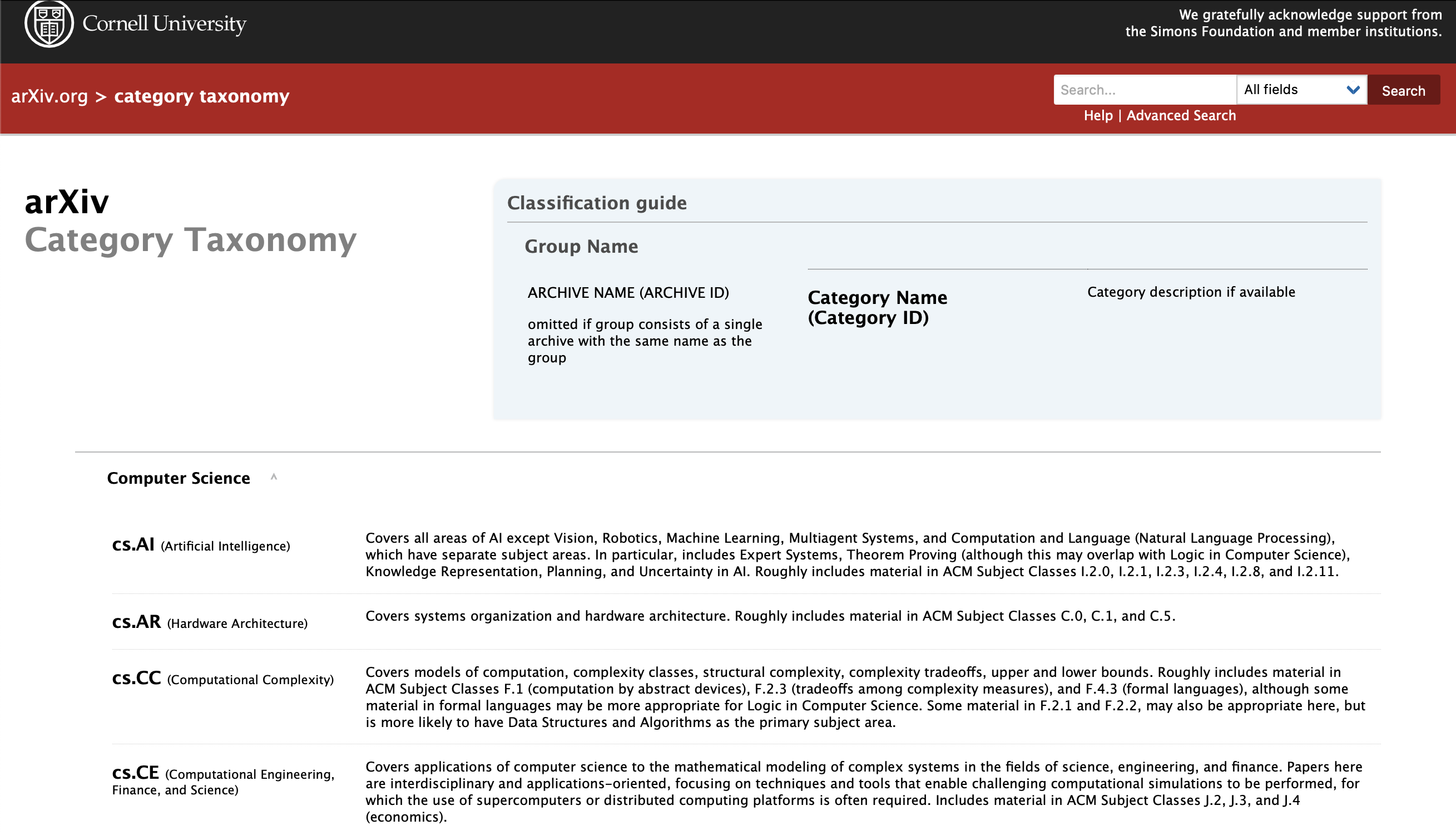 dc:description "This taxonomy was created by referring to <https://arxiv.org/category_taxonomy."> ;