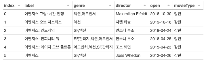 실행 결과는 아래와 같이 테이블 형태로 결과를 확인할 수 있다.