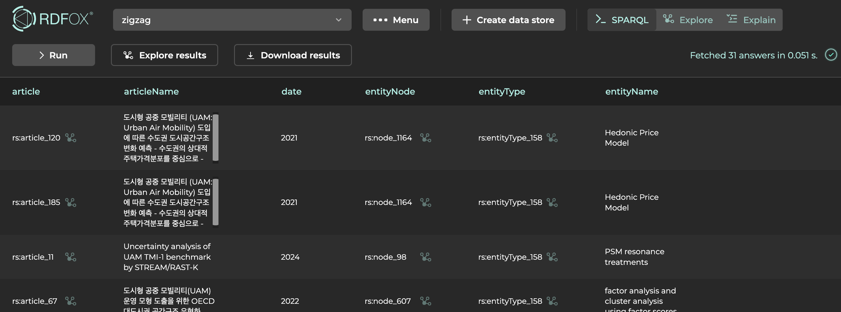 지난 글에서 파이썬을 활용해 그래프를 생성한 것과 마찬가지로 초록에서 추출한 정보를 그래프로 생성한 결과파일을 RDFox에 업로드를 하면 됩니다.