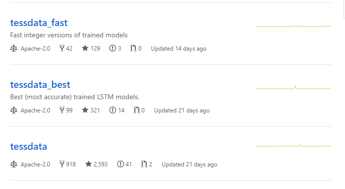 만약 추후에 다른 언어가 필요하게 되면 테서렉트 깃헙에서 다운받아 사용하면 된다.
