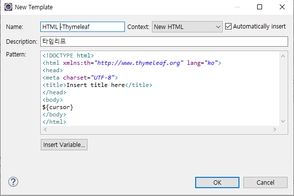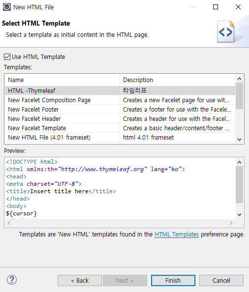 그래서 이클립스에 타임리프 형식의 html 템플릿을 추가해 보자.